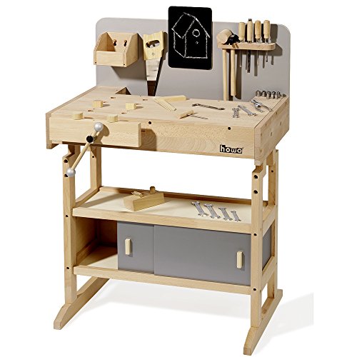 Massive Kinderwerkbank aus Hartholz: Diese stabile Werkzeugbank aus hochwertigem Hartholz ist langlebige und robust und für kleine Handwerker geeignet.